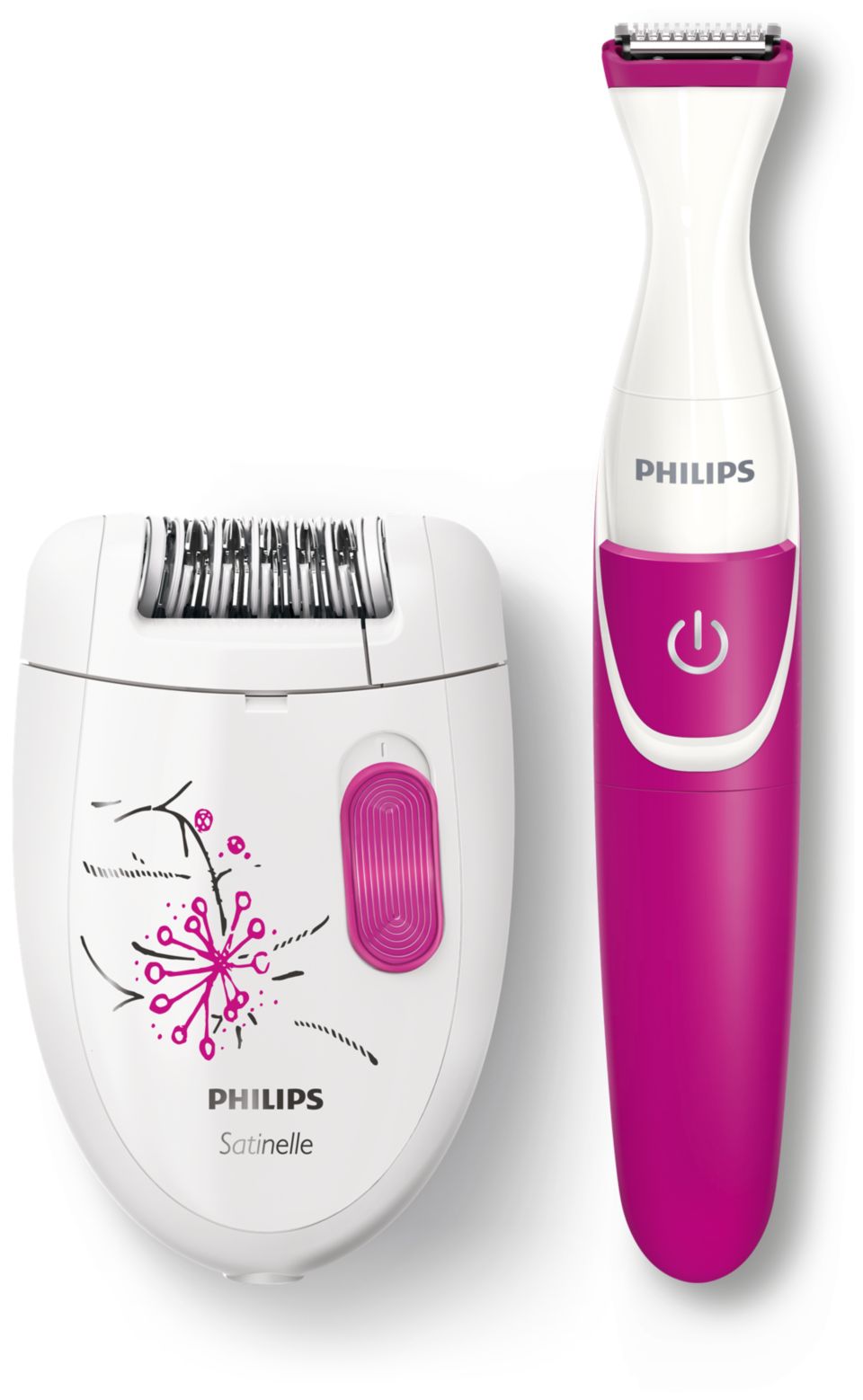 Las distintas zonas del cuerpo necesitan soluciones diferentes. Disfruta de una eliminación del vello rápida y duradera en las piernas y brazos con la depiladora Satinelle, y recorta y perfila la zona del bikini con el perfilador para la zona del bikini. EXTRA: bolsa de almacenamiento de edición limitada