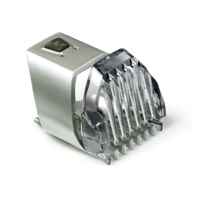 Un accesorio ideal para tu afeitadora corporal de Philips y el set de arreglo personal múltiple. Junto con el dispositivo de afeitado, este peine-guía flexible permite dar la forma adecuada a la barba y el bigote fácilmente.