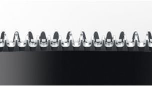 Las cuchillas permanecen muy afiladas para cortar siempre el vello perfectamente y de forma eficaz, pero cuenta con cuchillas y peines-guía redondeados para evitar la irritación de la piel.
