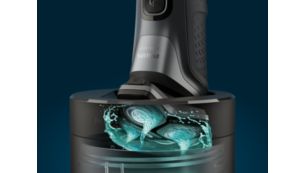 Para obtener el mejor rendimiento durante más tiempo, la potente dosis de limpieza lubrica y limpia en profundidad la afeitadora en tan solo 1 minuto. La dosis es 10 veces más eficaz que la limpieza con agua**. Es la dosis de limpieza más pequeña del mundo, que puedes guardar fácilmente y utilizar en cualquier lugar.