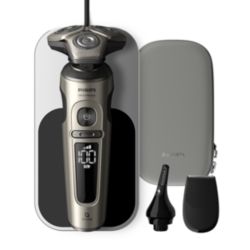 La afeitadora S9000 Prestige viene perfectamente empaquetada en un estuche de viaje de primera calidad con todos los accesorios de fácil montaje. Es ideal para viajes o para protegerla cuando no se utiliza.